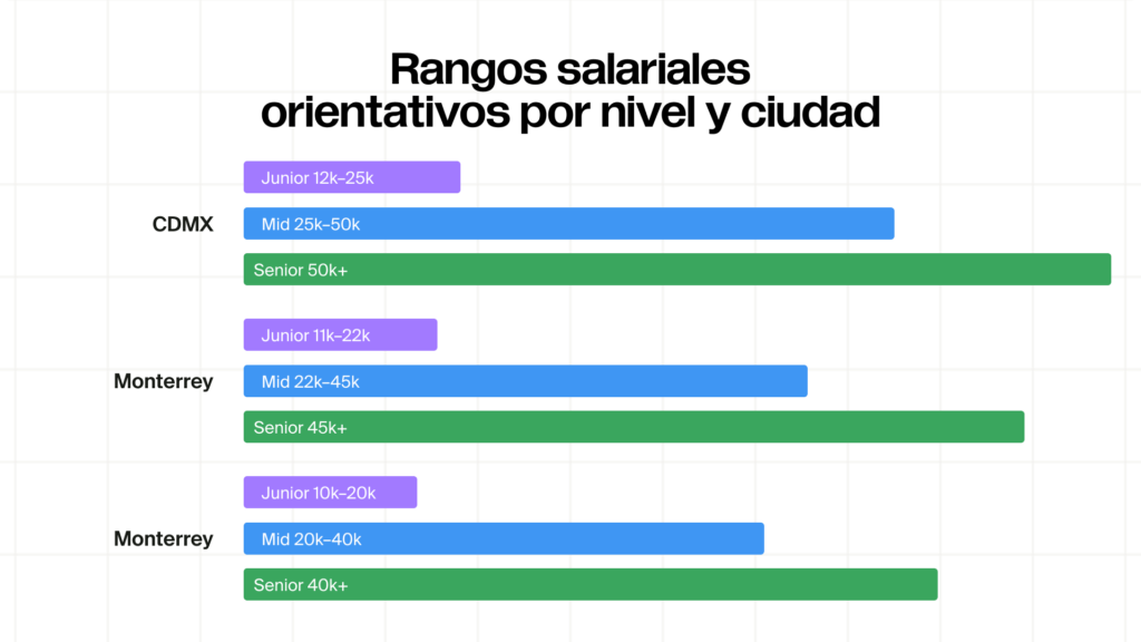 🔷 Ubicación: CDMX, Monterrey y Guadalajara suelen ofrecer los salarios más altos en México.