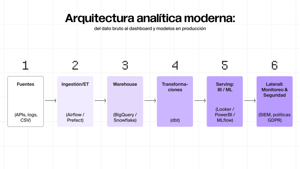 Herramientas comunes: | PostgreSQL, Snowflake, BigQuery. |