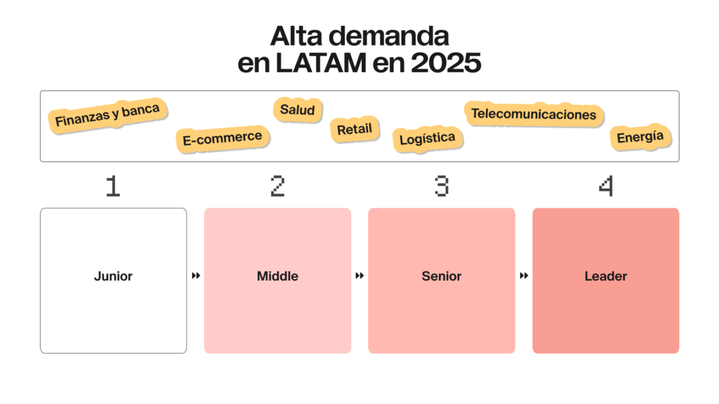 🔷 De junior a middle: el sueldo mensual promedio aumenta alrededor de $4,000 MXN.
