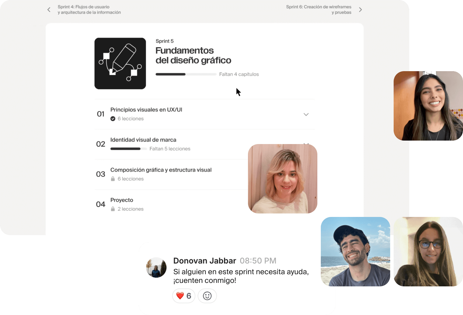 Este equilibrio entre independencia y acompañamiento garantiza que estés completamente preparado para tu primer trabajo en Diseño UX/UI.