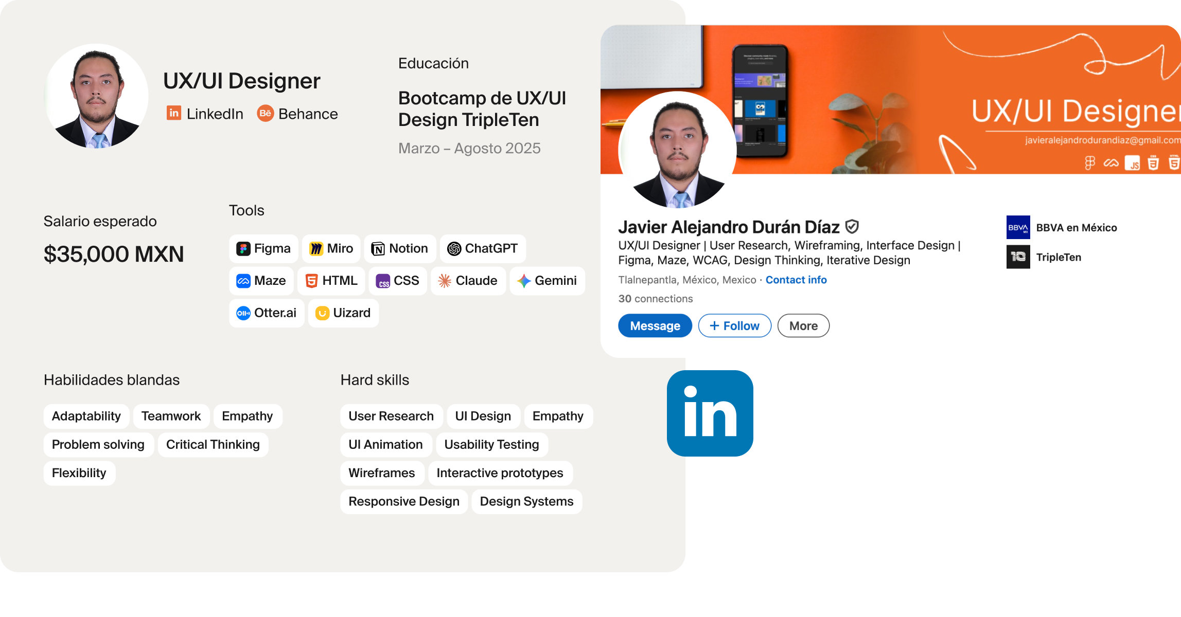 Al finalizar el programa, tendrás un portafolio profesional y la confianza necesaria para postularte a puestos reales como Diseñador UX/UI.